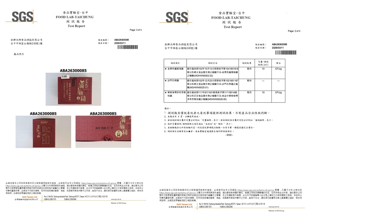 金牌大師滴雞精-八大營養素報告